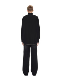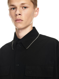 Black longsleeves over shirt featuring silver zip on the collar and on the bottom. Two falt pockets at front. Tonal buttoms as closure. Spread collar. MATERIALS 100% Cotton FITTING Model Daniel Christian wears size M Height 6' 1" (186 cm) Chest: 33" (85 cm) Waist: 27" (70 cm)