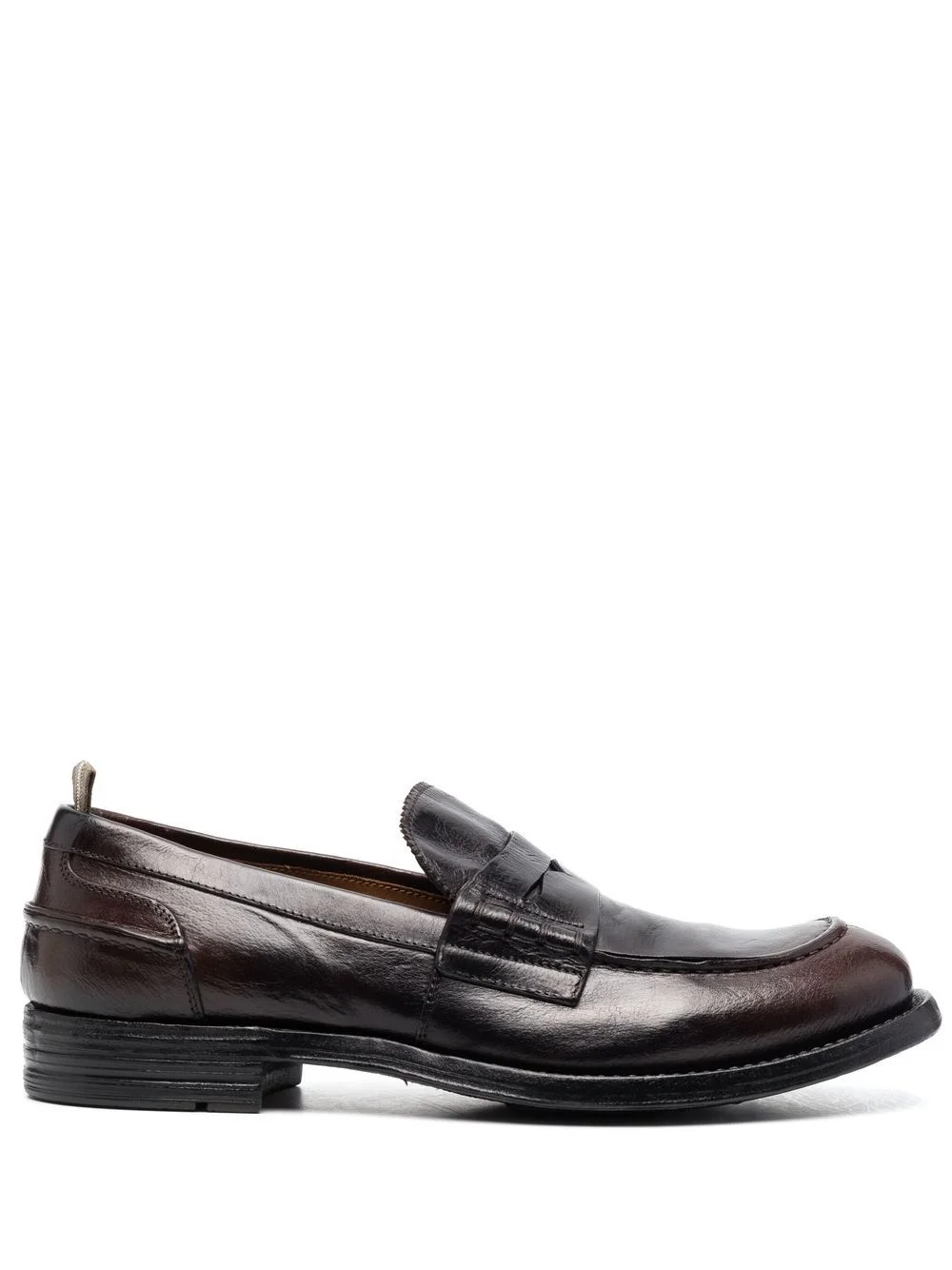 25mm slip-on leather loafers auburn brown calf leather penny slot round toe low heel slip-on style Made in Italy Composition Sole: Calf Leather 100%, Rubber 100% Lining: Calf Leather 100% Outer: Calf Leather 100% SIZE & FIT Measurement HEEL 0.98 in(2.5 cm) Sole height 0.39 in(1 cm)