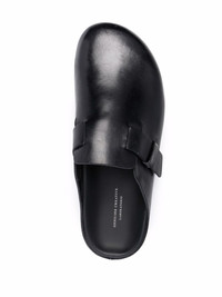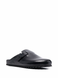 Agora slippers black calf leather/leather slip-on style round toe branded insole flat rubber sole Made in Italy Composition Sole: Rubber 100% Outer: Calf Leather 100% Lining: Leather 100% SIZE & FIT Measurement HEEL 0.78 in(2 cm) Sole height 0.39 in(1 cm)