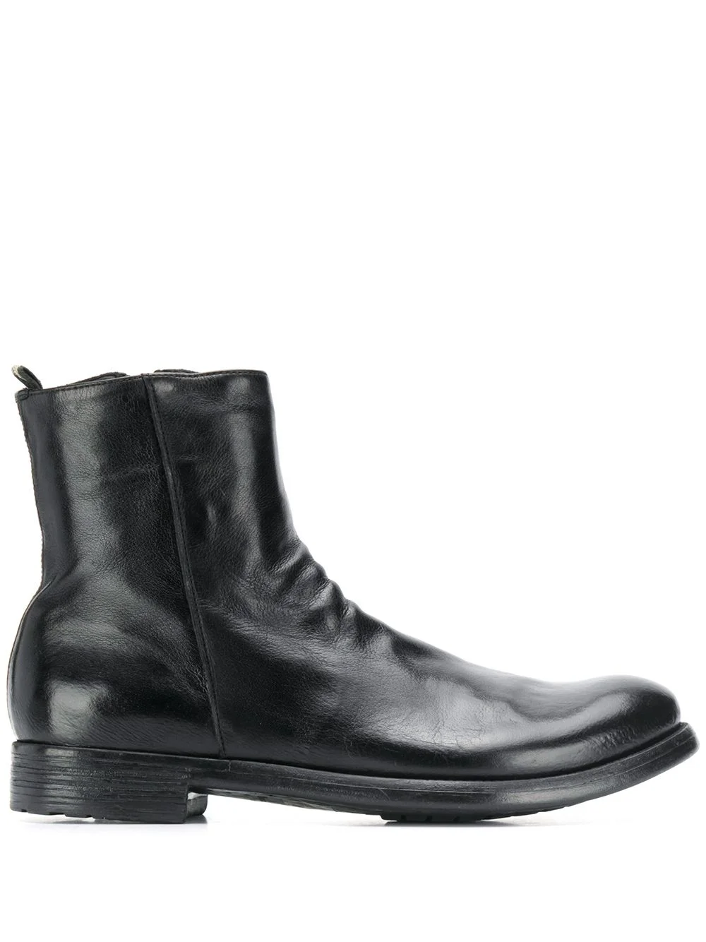 ankle boots Black leather ankle boots from Officine Creative featuring a pull tab at the rear, a chunky low block heel, a side zip closure and an almond toe. Made in Italy Composition Sole: Rubber 100% Outer: Calf Leather 100% Lining: Calf Leather 100%