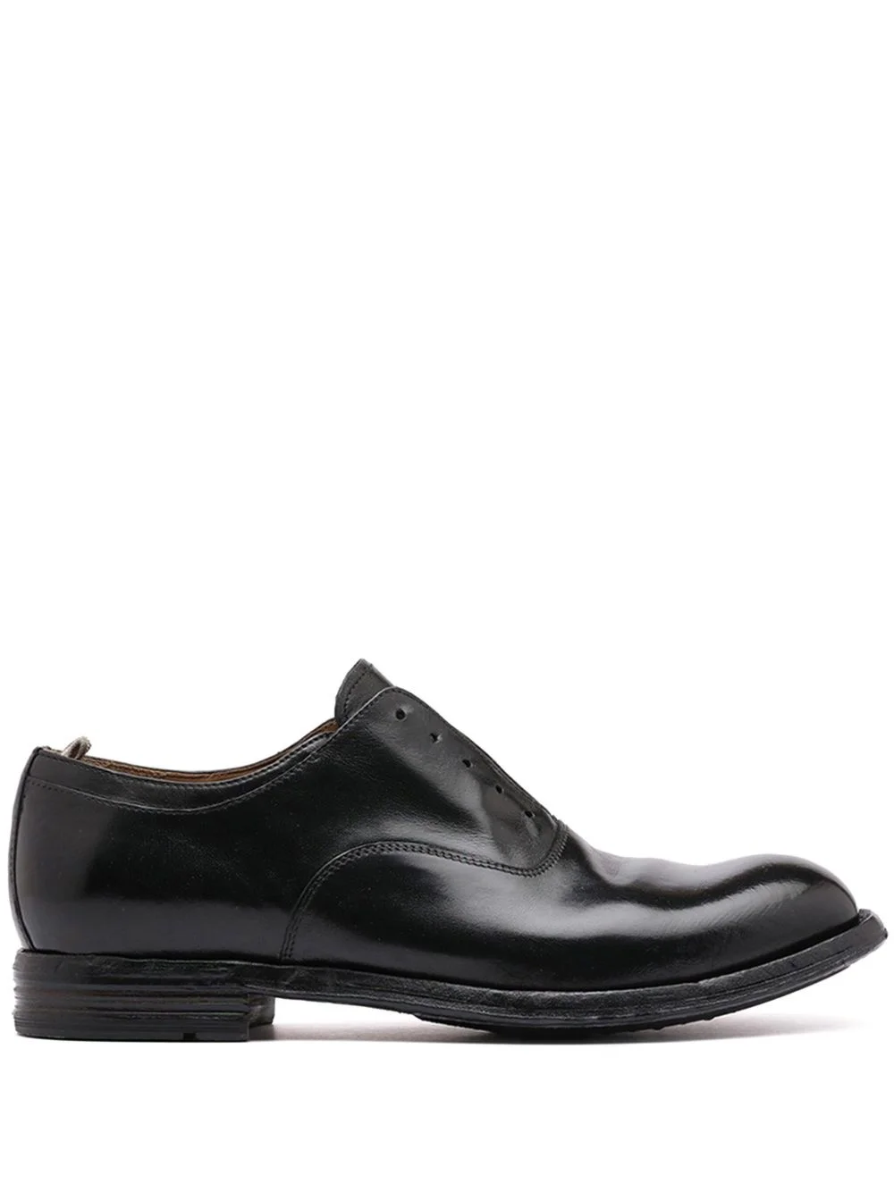 Balance oxford shoes Highlights - Black - Calf leather - Smooth grain - Slip-on style - Low stacked heel - Almond toe - Branded leather insole - Leather sole - Rubber outsole Made in Italy Composition Outer: Calf Leather 100% Lining: Calf Leather 100% Sole: Calf Leather 100%, Rubber 100%