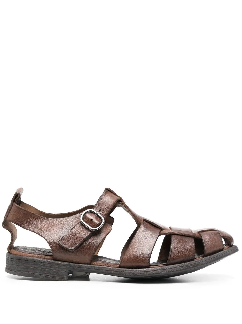 Chronicle caged sandals brown buffalo leather flat rubber sole side buckle fastening pull-tab at the heel caged design round toe Made in Italy Composition Sole: Rubber 100% Outer: Buffalo Leather 100% Lining: Buffalo Leather 100% SIZE & FIT Measurement HEEL 0.98 in(2.5 cm) HEIGHT 3.34 in(8.5 cm)