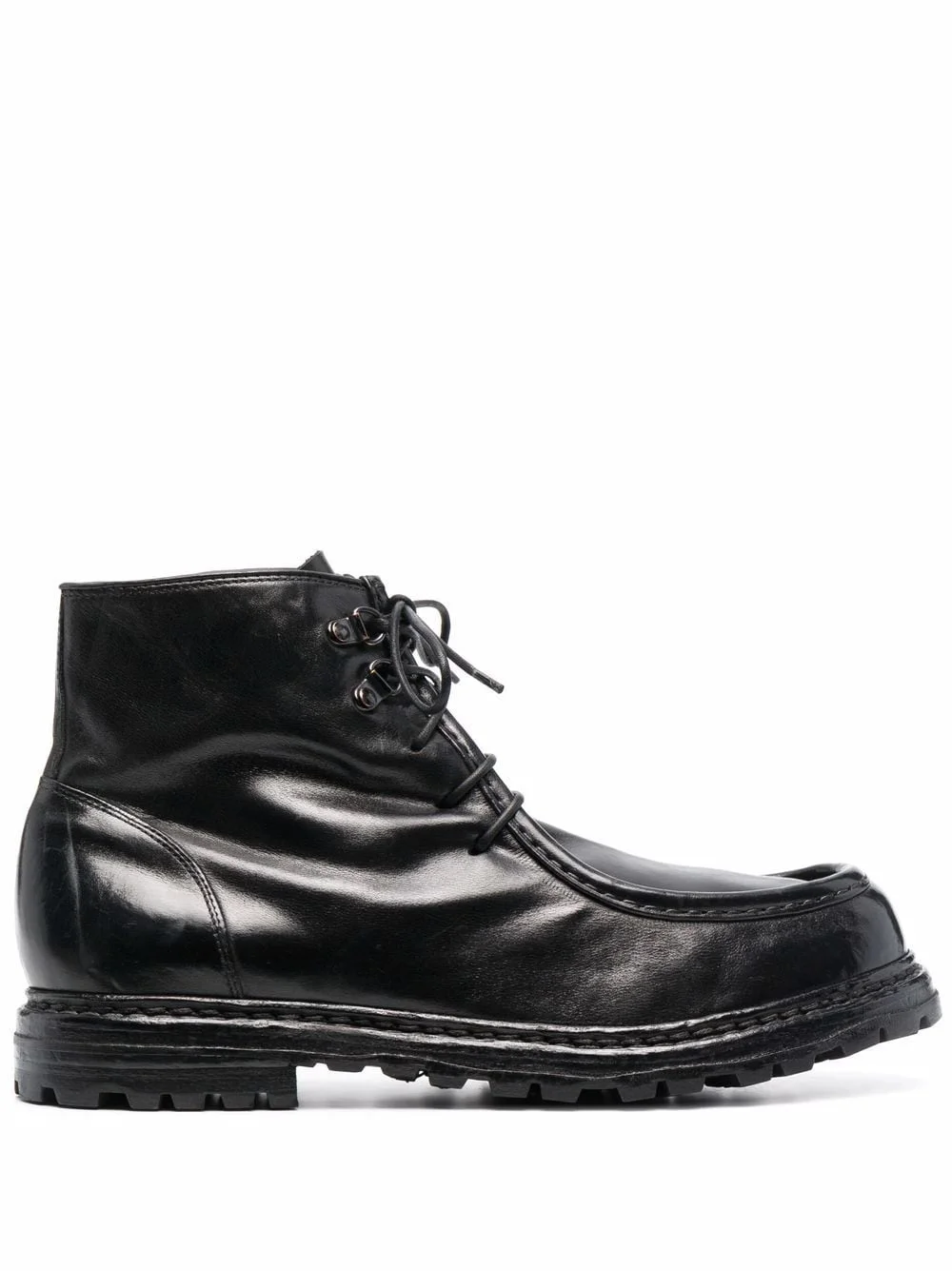 lace-up leather boots black leather round toe front lace-up fastening branded leather insole flat rubber sole Made in Italy Composition Outer: Horse Leather 100% Lining: Leather 100% Sole: Rubber 100% SIZE & FIT Measurement HEEL 1.57 in(4 cm) HEIGHT 5.11 in(13 cm) Sole height 1.18 in(3 cm)