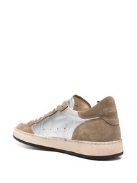 Magic panelled sneakers Highlights - Sand beige/silver-tone - Calf leather - Logo-print tongue - Panelled design - Perforated detailing - Round toe - Front lace-up fastening - Pull-tab at the heel - Branded leather insole - Flat rubber sole Made in Italy Composition Lining: Calf Leather 100% Sole: Rubber 100% Outer: Calf Leather 100% SIZE & FIT Measurement HEEL 1.18 in(3 cm) Sole height 0.98 in(2.5 cm)