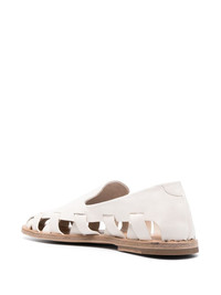 Miles 003 cut-out leather sandals Highlights - Optical white - Calf leather - Cut-out detailing - Round toe - Slip-on style - Branded leather insole - Flat leather sole Made in Italy Composition Outer: Calf Leather 100% Sole: Calf Leather 100% Lining: Calf Leather 100% SIZE & FIT Measurement HEEL 0.78 in(2 cm) Sole height 0.39 in(1 cm)