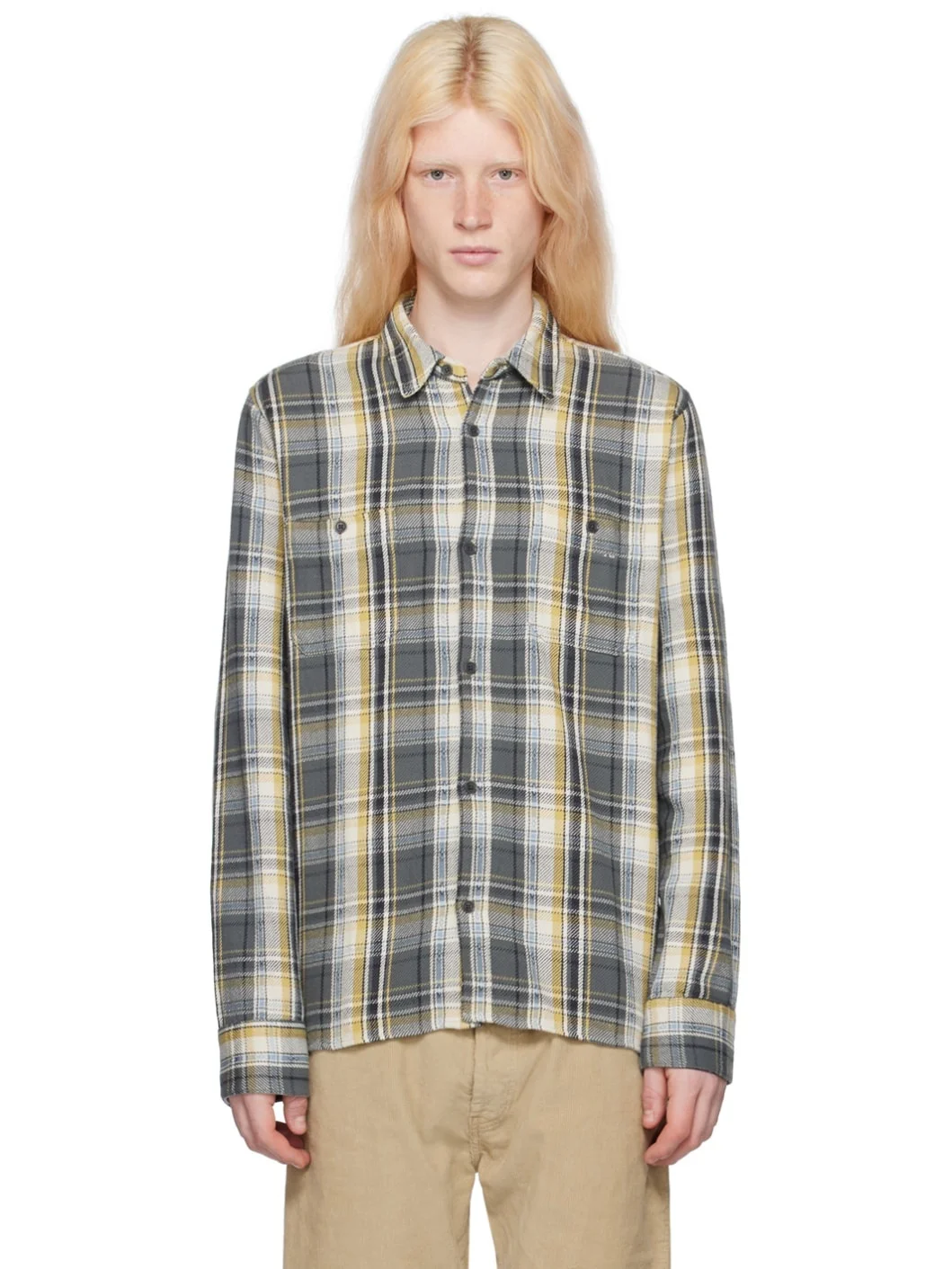 Cotton flannel shirt. Jacquard check pattern throughout. · Spread collar · Button closure · Patch pockets · Vented side seams · Single-button barrel cuffs · Partial plain-woven cotton lining Supplier color: Olive/Ecru/Mustard 100% cotton. Made in Portugal 241305M192000