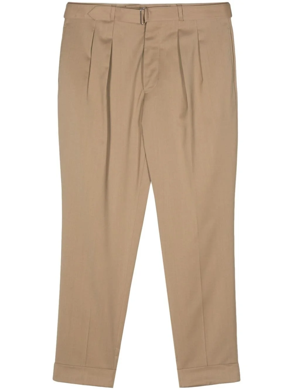 Pierre tapered trousers Highlights - Beige - Wool - Detachable waist belt - Belt loops - Two side slit pockets - Pleat detailing - Tapered leg - Turn-up hem - Two rear button-fastening jetted pockets - Hook and zip fly fastening Imported Composition Lining: Cotton 50%, Viscose 50%, Polyester 50%, Acetate 50% Outer: Wool 100%