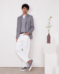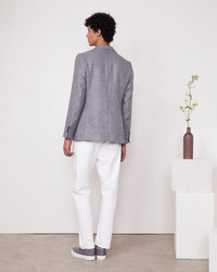 Single breasted two buttons jacket, soft shoulder. Flap pockets, double vents at back. Fully lined. Tweed italian linen wool. - 57% linen 43% wool - Single breasted - 2 buttons - 4 holes self fabric covered buttons - Soft shoulder - Flap pockets - Double vents at back - Fully lined - Dry cleaning only - Made in Portugal This product sizes normally, we advise you to take your usual size. Our model measures 1m86 and wears a size 48. Exists in sizes 44 to 54. REF: S25MTLG402PRE
