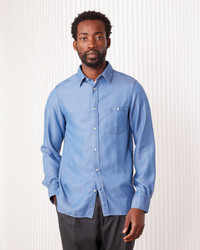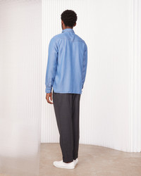 Long sleeves shirt with soft collar, slighlty rounded points. Gathered pleats at the cuffs and Officine Generale chest pocket. Rounded hem with gussets at sides. Piece dye. Japanese cotton poplin - 100% organic cotton - Soft collar with slightly rounded points - Gathered pleats at cuffs - Officine Generale chest pocket - Gussets at side seams - Rounded hem - Piece dye - Japanese light cotton poplin - Machine washable with similar colors, 30°. - Made in Portugal This product sizes normally, we advise you to take your usual size. Our model measures 1m86 and wears a size 31. Exists in sizes 28 to 38. REF: W25MSHI001PRE