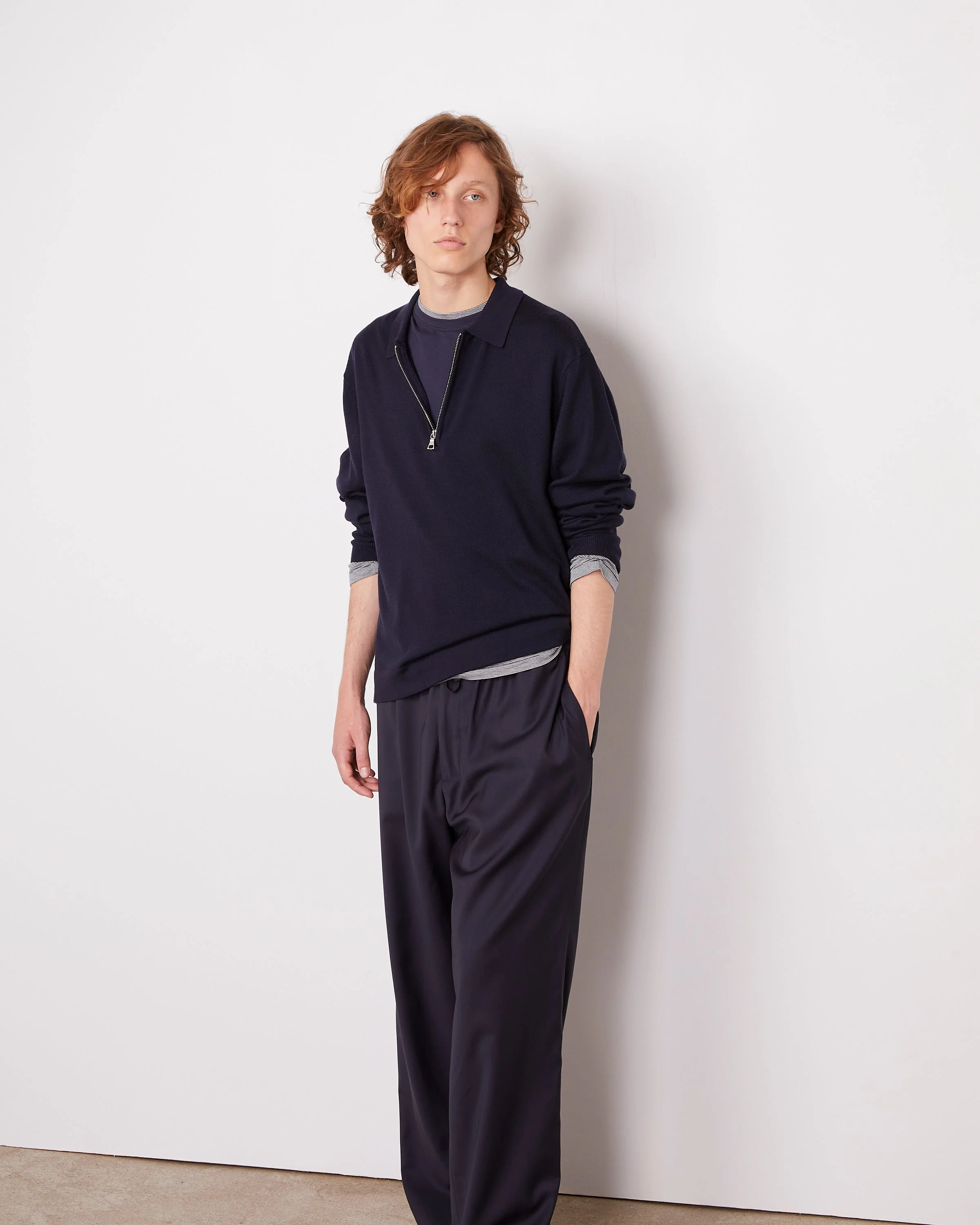 Long-sleeves polo with zipper. Relaxed fit. - 100% merino wool - One way zipper - Rib at collar, cuffs and bottom - Side slits - Dry cleaning only - Made in China This product sizes normally, we advise you to take your usual size. Our model measures 1m86 and wears a size S. Exists in sizes XS to XL. REF: S26MKNT306PRE