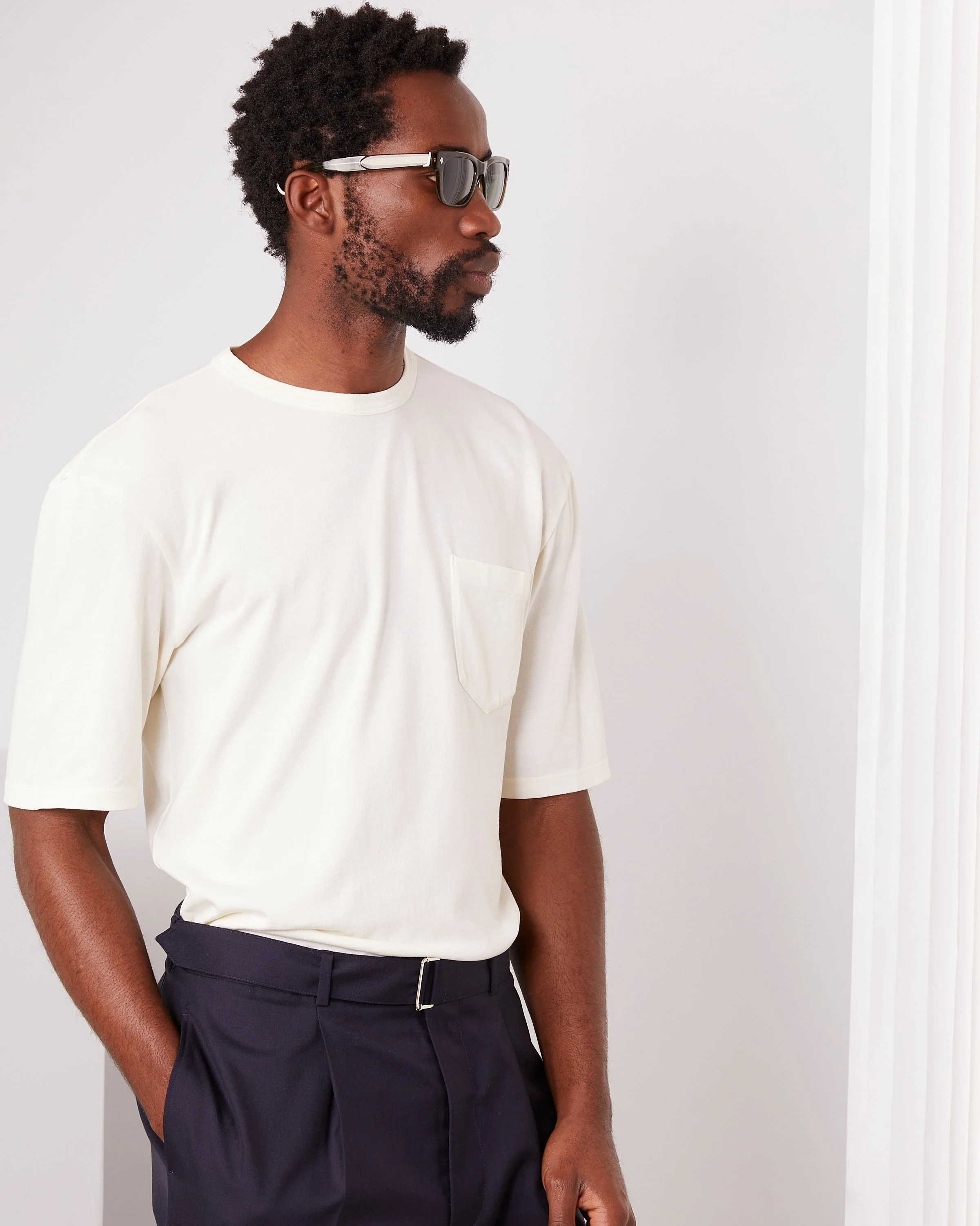 Short-sleeves crewneck pocket tee-shirt. Garment dye. - 50% cotton 50% modal - Crewneck - Short sleeves - Chest pocket - Oversize fit - Garment dye - Machine washable with similar colors, 30° - Made in Portugal This product sizes normally, we advise you to take your usual size. Our model measures 1m86 and wears a size S. Exists in sizes XS to XXL. REF: W25MTEE205PRE