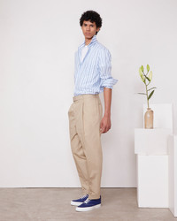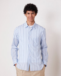 Long sleeves shirt with soft collar slighlty rounded points. Gathered pleats at the cuffs and Officine Generale asymetrical chest pocket. Rounded hem with gussets at sides. - 100% COTTON - Soft collar with slightly rounded points - Gathered pleats at cuffs - Officine Generale chest pocket - Gussets at side seams - Rounded hem - Classic fit - Garment wash - Machine washable with similar colors, 30°. - Made in Portugal This product sizes normally, we advise you to take your usual size. Our model measures 1m86 and wears a size S. Exists in sizes XS to XL. REF: S25MSHI007PRE