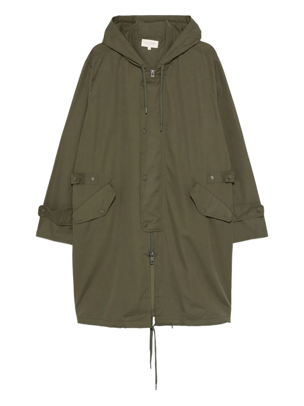 Bradley hooded drawstring coat Highlights - Olive green - Drawstring hood - Zip fastening - Button placket - Side flap pockets - Long sleeves Imported Composition Cotton 45%, Polyester 45%, Polyamide 10% Washing instructions Read Manufacturer Guidelines