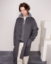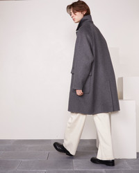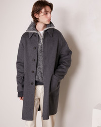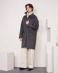 Single breasted coat in double splittable wool. Loose fit. Hidden front button placket with 5 buttons. Large patched pockets with flaps. Raglan sleeves. Buttonhole and button detail at collar. Half lined. - 100% Wool - Ragaln sleeve - Large patched pocket with flap - Hidden placket with 5 buttons - Double spittable - Semi-lined - Italian wool double spittable - Dry cleaning only - Made in China This product sizes normally, we advise you to take your usual size. Our model measures 1m86 and wears a size S. Exists in sizes XS to XL. REF: W24MCTS663