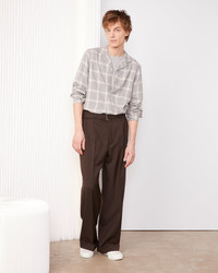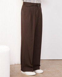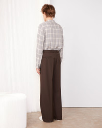 Wide-leg trousers with double pleats. Cuffed hem at the bottom of the leg. Italian pockets on the front and buttoned double welt pockets on the back. Fly with hidden zip fastening. Covered four-holes buttons. Removable fabric belt. Lined from the waist to the knee. - 100% virgin wool - Double italian pleats at the front - Two italian pockets at the front - Hidden zipped fly - Two buttoned welt pockets with a flap at the back - Cuffed hem at the bottom of the leg - Removable fabric belt - Lined from the belt to the knee in the front - 4 holes covered buttons - Made in Portugal - Dry cleaning only This product sizes normally, we advise you to take your usual size. Our model measures 1m86 and wears a size 48. Exists in sizes 44 to 56. REF: W25MTLG466