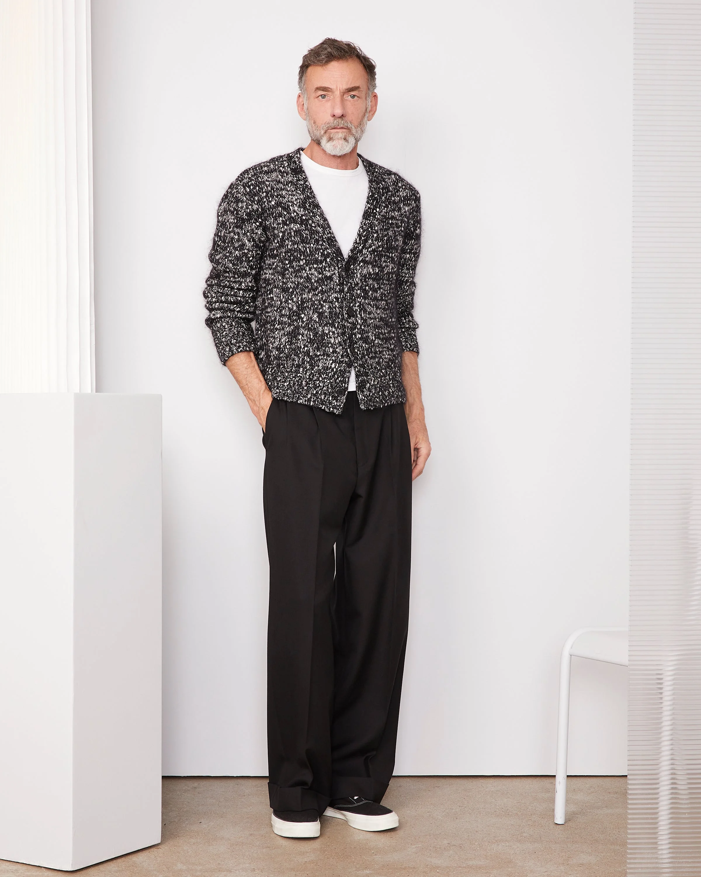 Wide-leg trousers with double pleats. Cuffed hem at the bottom of the leg. Italian pockets on the front and buttoned double welt pockets on the back. Fly with hidden zip fastening. Covered four-holes buttons. Removable fabric belt. Lined from the waist to the knee. Jacket available in the same fabric. - 100% virgin wool - Double italian pleats at the front - Two italian pockets at the front - Hidden zipped fly - Two buttoned welt pockets with a flap at the back - Cuffed hem at the bottom of the leg - Removable fabric belt - Lined from the belt to the knee in the front - Matching jacket available - Made in Portugal - Dry cleaning only This product sizes normally, we advise you to take your usual size. Our model measures 1m86 and wears a size 48. Exists in sizes 44 to 56. REF: W25MTLG465