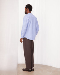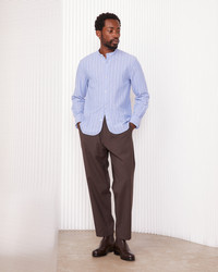 Long-sleeved shirt with band collar. Gathered pleats at cuffs. Body length slightly longer than our usual shirts. Rounded bottoms with side gussets. Garment wash. - 100% cotton - Band collar - Gathered pleats at cuffs - Gussets at side seams - Rounded bottom - Straight fit - Garment wash - Machine washable with similar colors, 30° - Made in Turkiye This product sizes normally, we advise you to take your usual size. Our model measures 1m86 and wears a size S. Exists in sizes XS to XXL. REF: W25MSHI009PRE