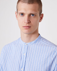Band collar long sleeves shirt. Gathered pleats on cuffs. Straight bottom with slits on sides. Garment wash - 100% Cotton - Band collar - Long sleeves - Gathered pleats on cuffs - Straight bottom with side slits - Garment wash - Machine washable with similar colors, 30°. - Made in Portugal This product sizes normally, we advise you to take your usual size. Our model measures 1m86 and wears a size S. Exists in sizes XS to XL. REF: S25MSHI030