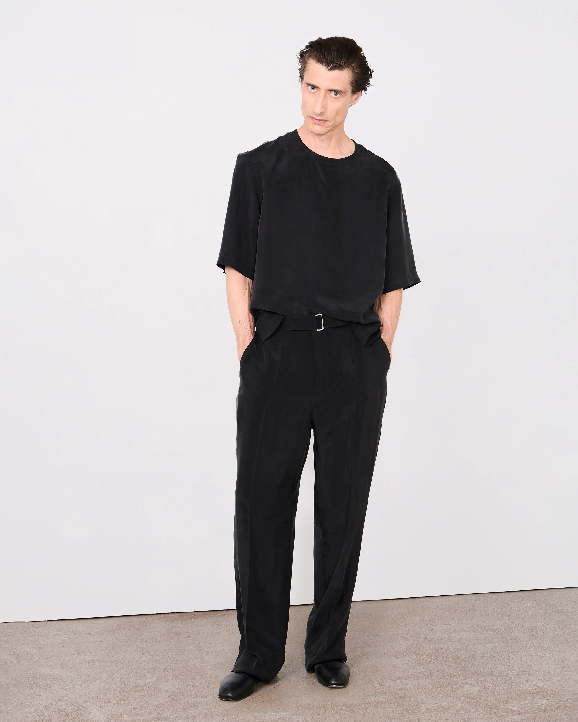 Round collar shirt with quarter sleeves. Oversize fit - 100% cupro - Round collar - Dropped shoulder - Quarter sleeves - Side slits - Straight bottom - Opening slit at the upper middle back - Made in Portugal - Machine washable with similar colors, 30°. This product sizes normally, we advise you to take your usual size. Our model measures 1m86 and wears a size S. Exists in sizes XS to XL. REF: S26MSHI018