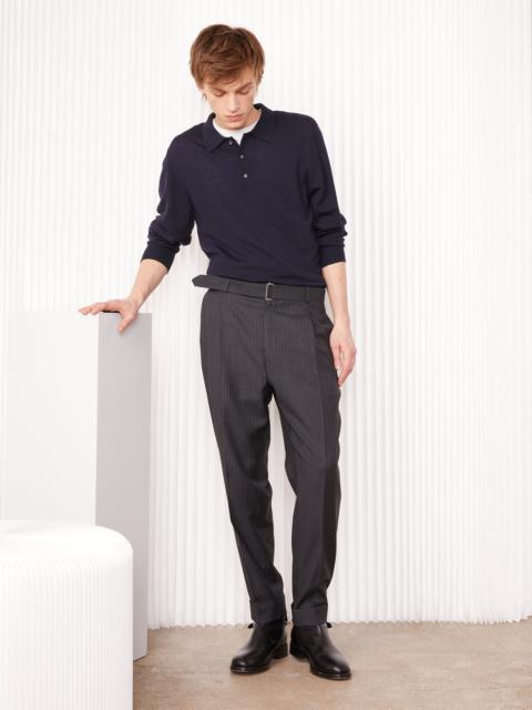 Plain front pant. Wide leg fit. Removable self fabric belt. Pipped pockets. 4 holes covered buttons. Lined in the front from the belt to the knee. Matching jacket available - 100% virgin wool - Plain front pant - Removable self fabric belt - 4 holes covered buttons - Pipped pockets - Wide leg fit - Dry cleaning only - Made in Portugal This product sizes normally, we advise you to take your usual size. Our model measures 1m86 and wears a size 48. Exists in sizes 44 to 56. REF: W25MTLG452PRE