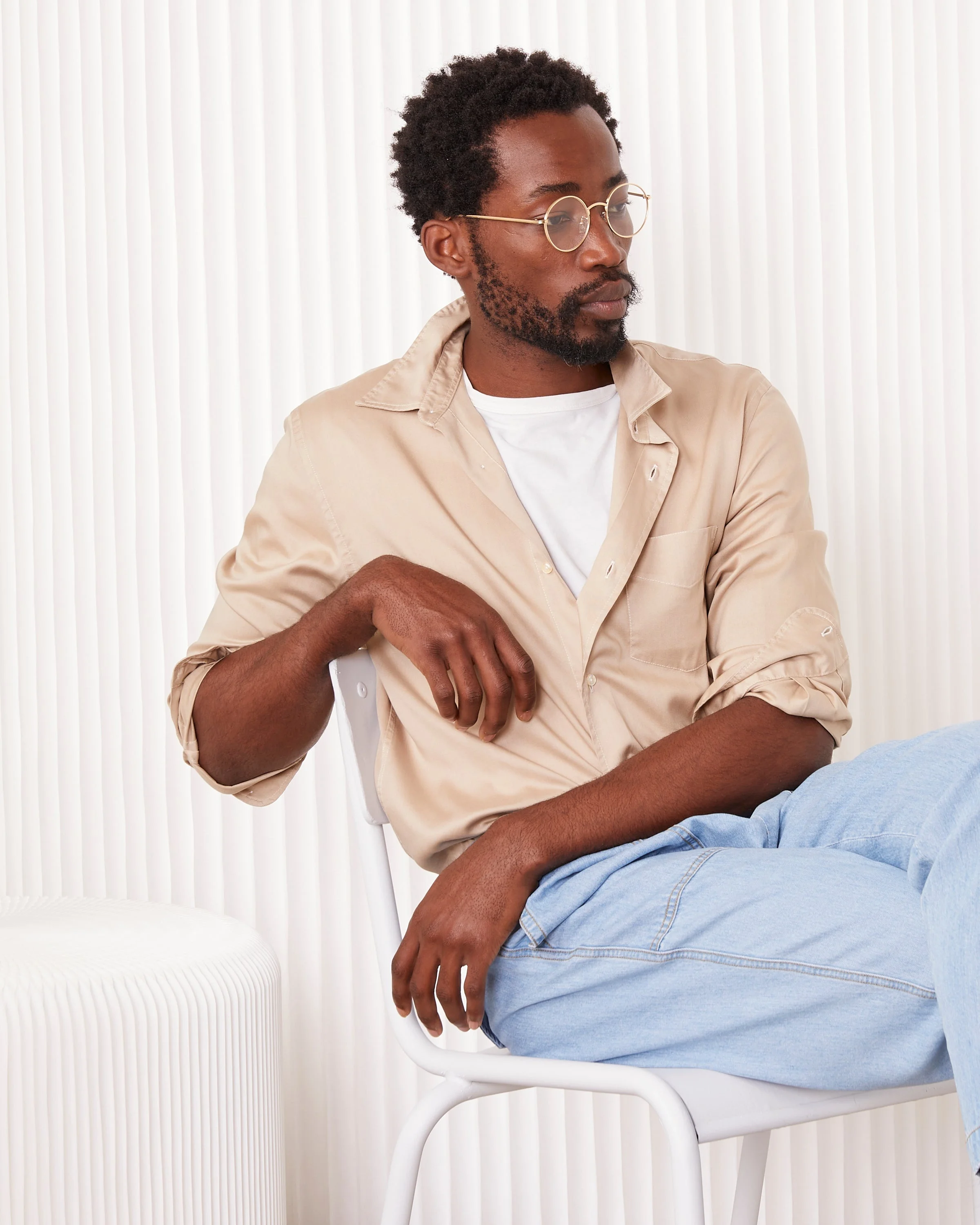 Camp shirt with quarter sleeves. Loose fit. Straight bottom with side slits. Officine generale exclusive print. Garment wash. Lyocell. - 100% lyocell - Flat collar - Quarter sleeves - Single needle at side seam - Sides slits - Straight bottom - Loose fit - Garment wash - Machine washable with similar colors, 30° - Made in Portugal This product sizes normally, we advise you to take your usual size. Our model measures 1m86 and wears a size S. Exists in sizes XS to XXL. REF: W25MSHI004PRE
