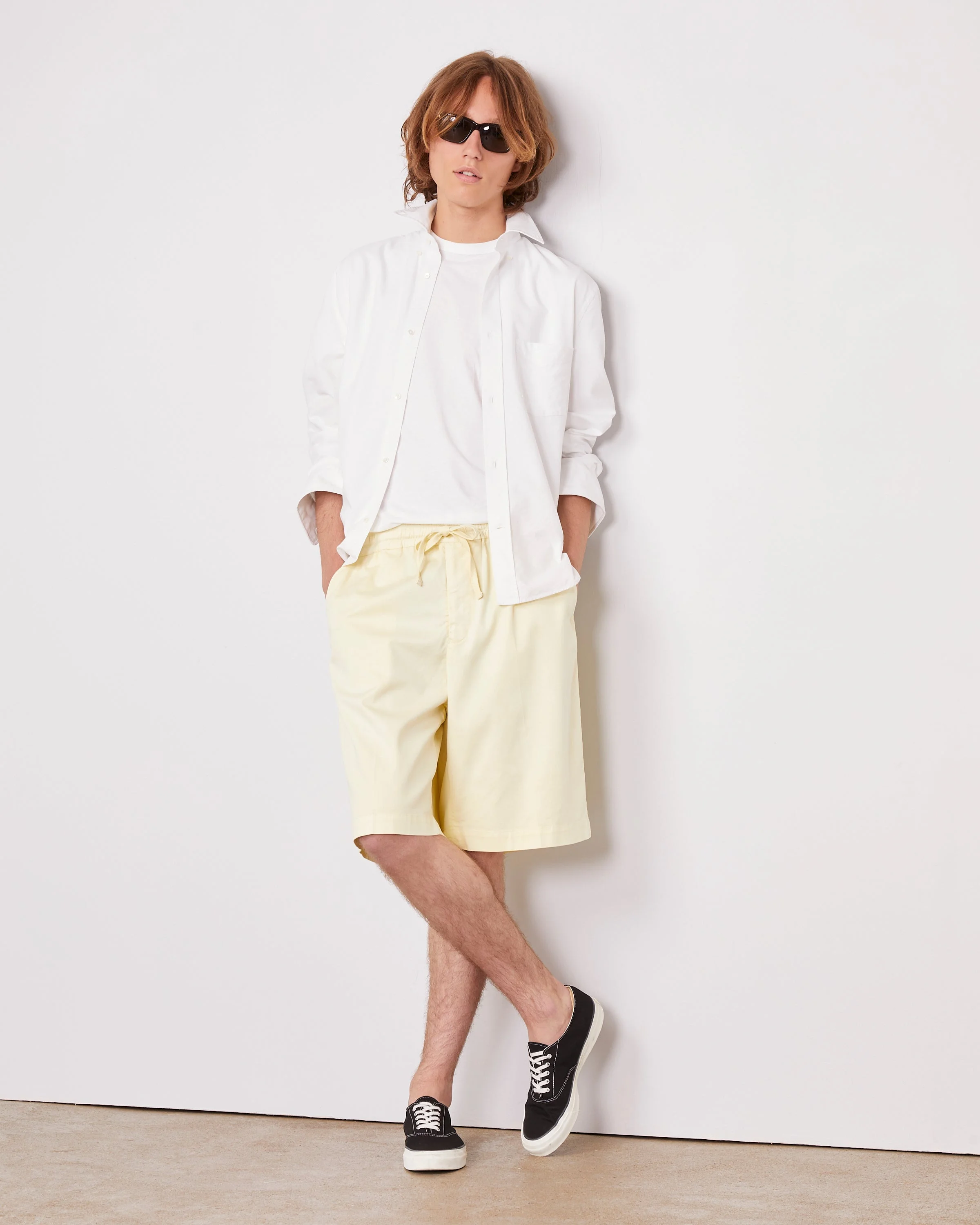 Elasticated waistband shorts, slightly loose fit. - 55% cotton 42% lyocell 3% elastane - Plain front - Self fabric drawstring - Side seam pockets - Patch pockets - Garment wash - Made in Tunisia - Dry cleaning only - Made in Tunisia This product sizes normally, we advise you to take your usual size. Our model measures 1m86 and wears a size 48. Exists in sizes 44 to 54. REF: S26MSHT800PRE