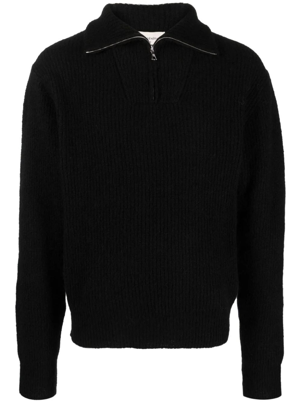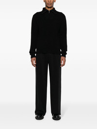 high-neck ribbed jumper Highlights - Black - Ribbed knit - High neck - Short front zip fastening - Drop shoulder - Long sleeves - Straight hem Made in Italy Composition Alpaca 37%, Cotton 30%, Polyamide 26%, Wool 7% SIZE & FIT Model measurements Height 6 ft 2 in(1.87 m) Bust/Chest 37 in(94 cm) Hips 33.85 in(86 cm) Waist 27.95 in(71 cm) FittingInformation Designed for a relaxed fit, this piece allows for comfort and movement when worn Made with a midweight knit, this piece offers some stretch This piece fits true to size – take your usual size