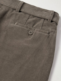 Hoche Slim-Fit Straight-Leg Belted Cotton-Blend Corduroy Trousers Taupe