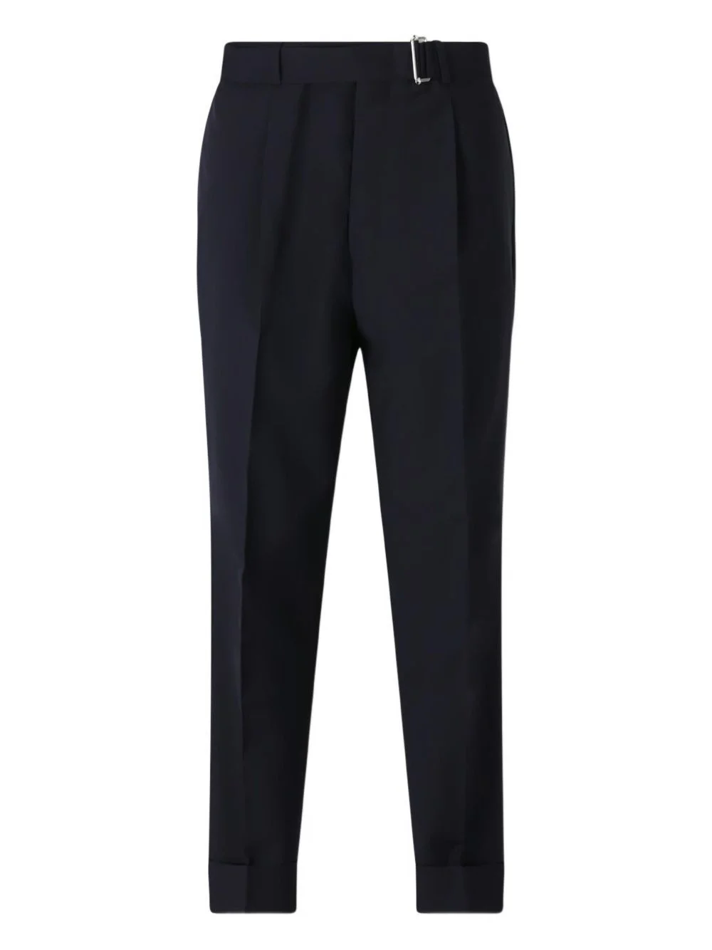 pleated belted trousers Highlights - Dark navy - Pleated front - Belted waist - Side slit pockets Imported Composition Virgin Wool 100% Washing instructions Dry Clean Only