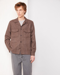 Slightly loose-fitting overshirt with long sleeves. Single button fastening. Flap chest pockets with concealed button. Finished with side slits. Button placket at cuffs. Fully lined. - 100% virgin wool - Flat collar - Front buttoned placket - Two patch pockets with flaps on the chest - Buttoned cuffs - Side slits - Straight bottom - Western back yoke detail - Fully lined - Made in Portugal - Nettoyage a sec uniquement - Dry cleaning only This product sizes normally, we advise you to take your usual size. Our model measures 1m86 and wears a size S. Exists in sizes XS to XXL. REF: W25MOVS074