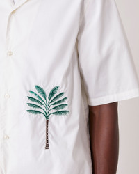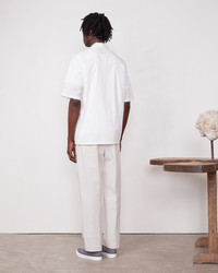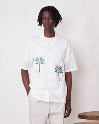 Camp shirt with quarter sleeves. Loop detail at the collar. Loose fit. Straight bottom with side slits. Officine generale exclusive embroidery. Garment wash - 100% Organic cotton - Camp shirt - Quarter sleeves - Loop detail at the collar - Loose fit - Straight bottom with side slits - Officine Generale exclusive embroidery - Garment wash - Machine washable with similar colors, 30°. - Made in Portugal This product sizes normally, we advise you to take your usual size. Our model measures 1m86 and wears a size S. Exists in sizes XS to XL. REF: S25MSHI026