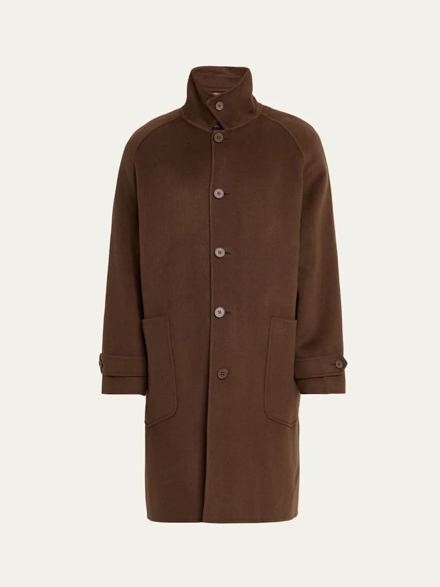 Officine Generale "Bryce" classic single-breasted coat fitted with tonal buttons for a streamlined look Buttonable spread collar Long raglan sleeves Adjustable tab cuffs Two side patch pockets Center back slit Knee length Loose fit Button front closure Wool Dry clean only Imported Online Inquiries: BGS21_NDSTA| Store Inquiries: #5078738