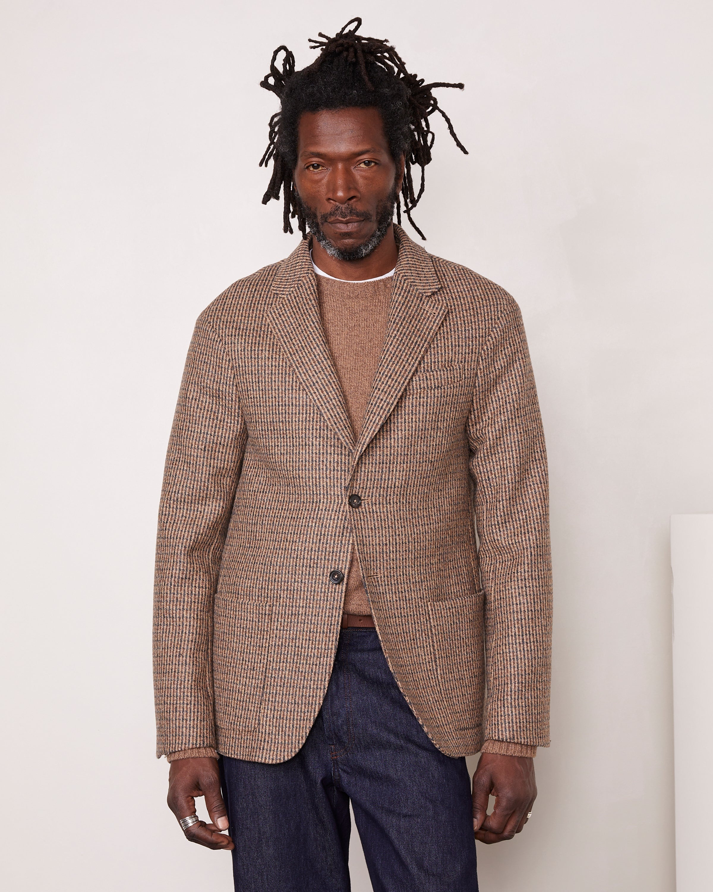 Single breasted two buttons jacket in italian 3ply wool. Loose fit. Drooping shoulders. Patch pockets and double vents at back. 4 holes self fabric covered buttons. Fully lined. - 100% virgin wool - Single breasted - 2 buttons - 4 buttons holes - Patch pockets - Double vents at back - Fully lined - Fully lined - Italian virgin wool - Dry cleaning only - Made in Portugal This product sizes normally, we advise you to take your usual size. Our model measures 1m86 and wears a size 48. Exists in sizes 44 to 54. REF: W24MTLG410
