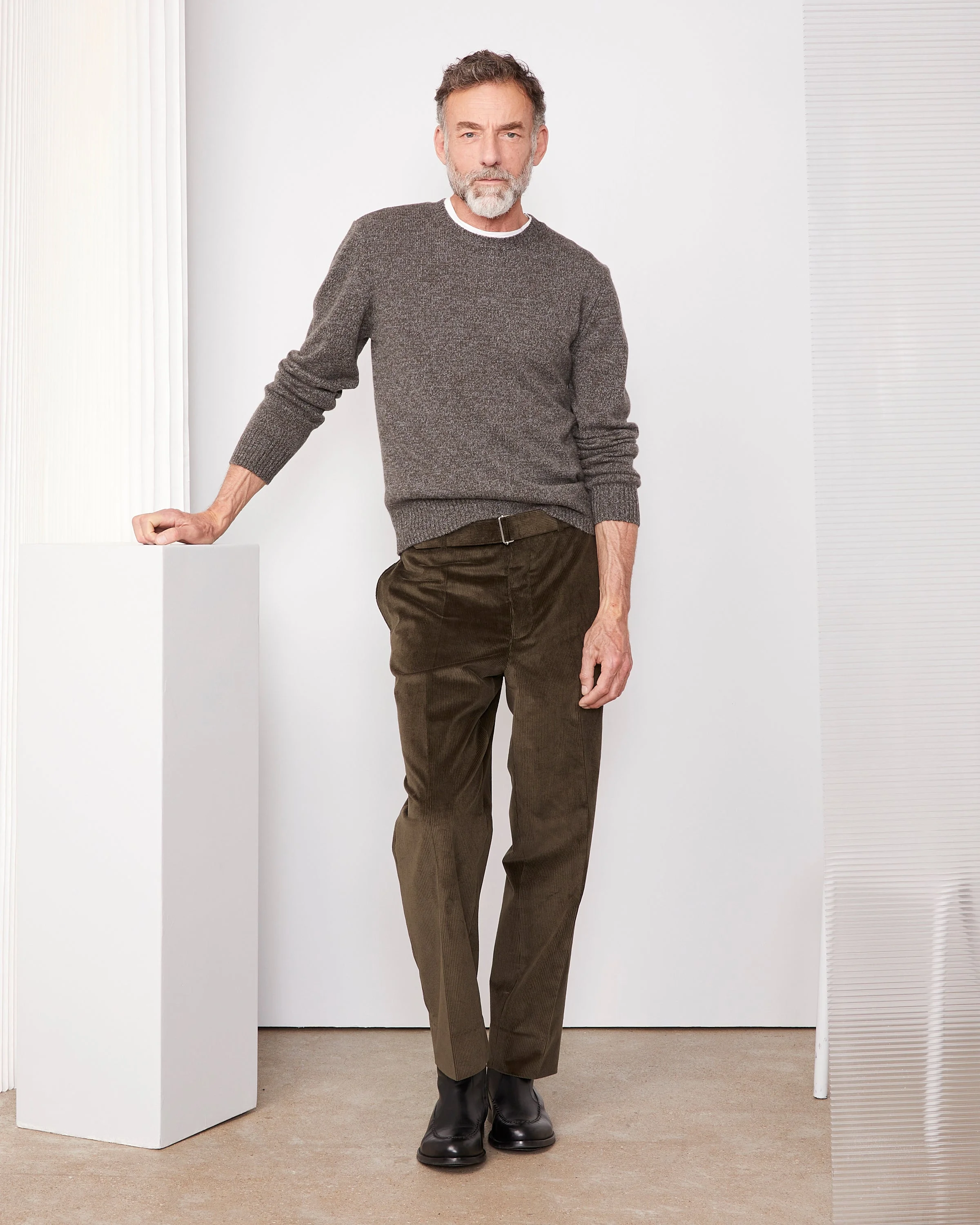 Marled crewneck sweater. 2x2 rib on collar, hem and cuffs. - 90% wool 10% cashmere - Rounded collar - Marled effect - Long sleeves - Ribbed collar, cuffs and bottom - Made in China - Dry cleaning only This product sizes normally, we advise you to take your usual size. Our model measures 1m86 and wears a size S. Exists in sizes XS to XXL. REF: W25MKNT329