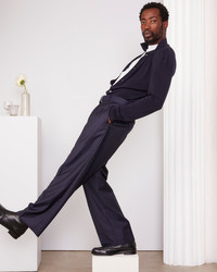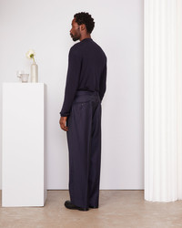Plain front pant with elastic waistband. Adjustable gros grain drawstring at inside belt. Patch back pocket. Loose at upper thigh and taper leg. Invisible hem. Lined in the front from the belt to the knee. Matching jacket available. - 98% virgin wool 2% elastane - Plain front pant with elastic waistband - Adjustable gros grain drawstring at inside belt. - Patch back pockets - Invisible hem - Lined in the front from the belt to the knee - Loose at upper thigh and taper leg - Dry cleaning only - Made in Portugal This product sizes normally, we advise you to take your usual size. Our model measures 1m86 and wears a size 48. Exists in sizes 44 to 56. REF: W25MTLG451PRE