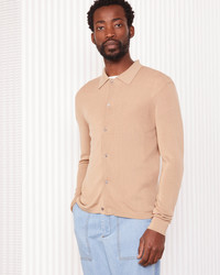 Long sleeved button-down knitted polo. Rib stitching at cuffs with a tubular jersey at hem and side slits. Wool lyocell. - 85% wool 15% lyocell - Button down polo - Long sleeves. - RIB at cuff - Tubular jersey at hem - Side slits - Straight bottom - Dry cleaning only - Made in China This product sizes normally, we advise you to take your usual size. Our model measures 1m86 and wears a size S. Exists in sizes XS to XXL. REF: W25MKNT302PRE