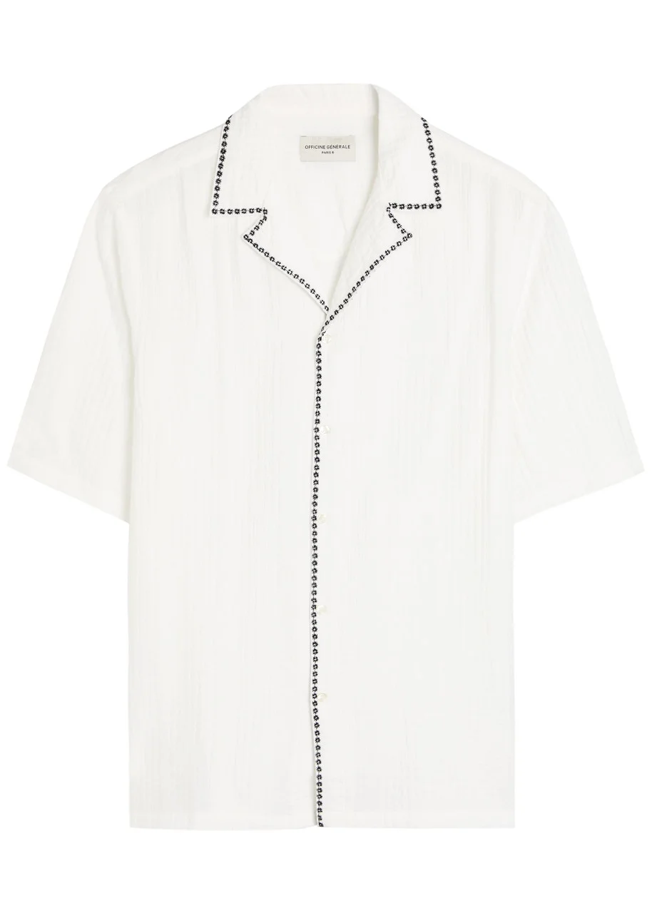 Officine Générale Eren Seersucker Embroidered Trims Shirt