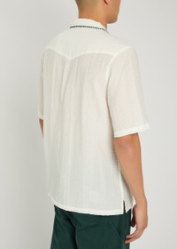 Info & Care Officine Generale seersucker shirt Camp collar, embroidered trims, side splits Button fastening through front; 80% viscose, 20% nylon; Hand wash; Size & Fit Length shoulder to hem: 28 inches/ 71.5cm; Midweight Relaxed fit Model is 6'2"/ 188cm, chest size 38 inches and wears a size medium