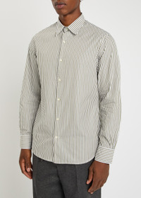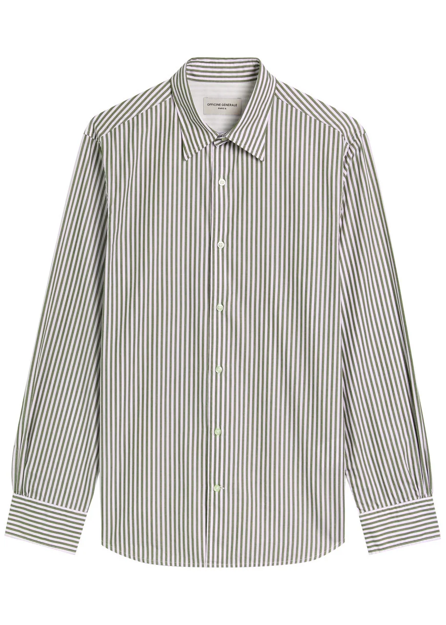 Info & Care Officine Generale cotton-poplin shirt Striped, button-fastening cuffs, curved hem Button fastenings through front 100% cotton Machine wash Size & Fit Length shoulder to hem: 27 inches/ 68.5cm Midweight Relaxed fit, slim across the shoulders Model is 6'1"/ 185cm, chest size 38.5 inches and wears a size medium