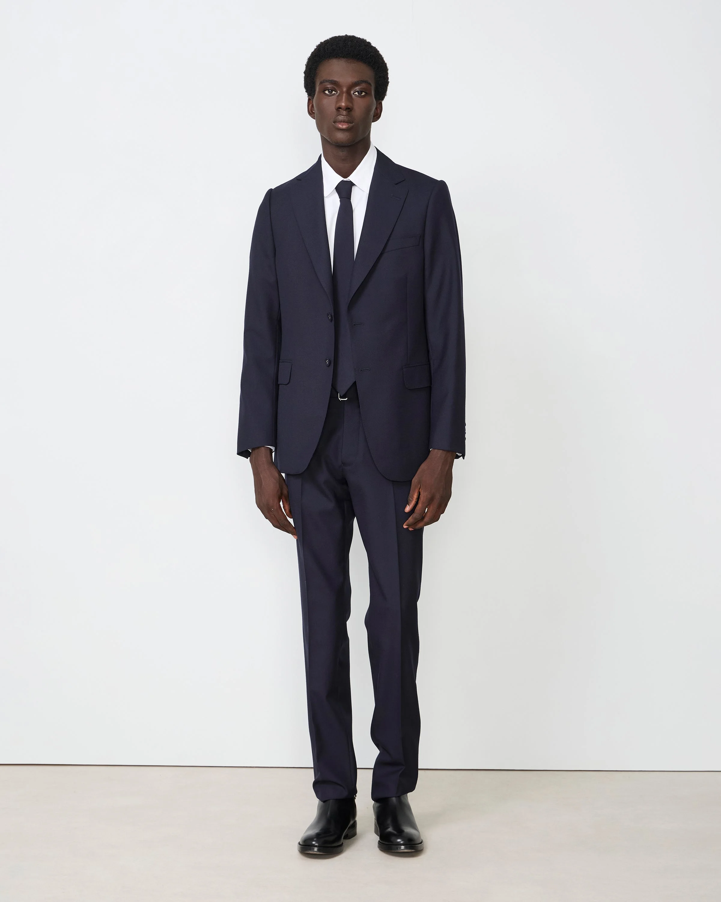 Plain front pants with a regular slim fit. Removable self fabric belt. 4 holes covered buttons. - 100% wool - Plain front - Two side seam pockets - Fly with hidden buttons - Two buttoned double welt pockets at the back - Removable fabric belt - 4 holes covered buttons - Matching jacket available - Made in Portugal - Dry cleaning only This product sizes normally, we advise you to take your usual size. Our model measures 1m86 and wears a size 48. Exists in sizes 44 to 56. REF: W25MTLG473EW