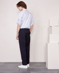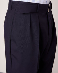 Two pleats pant. Loose at upper thigh and tapered at bottom. 5 CM hem cuffed. Removable self fabric belt. 4 holes covered buttons. Matching jacket available. - 100% virgin wool - 2 pleats - Removable self fabric belt - 4 holes self fabric covered buttons - Buttoned fly front opening - 5 CM cuffed hem - Loose fit - Italian virgin wool - Dry cleaning only - Made in Portugal This product sizes normally, we advise you to take your usual size. Our model measures 1m86 and wears a size 48. Exists in sizes 44 to 54. REF: W24MTLG469