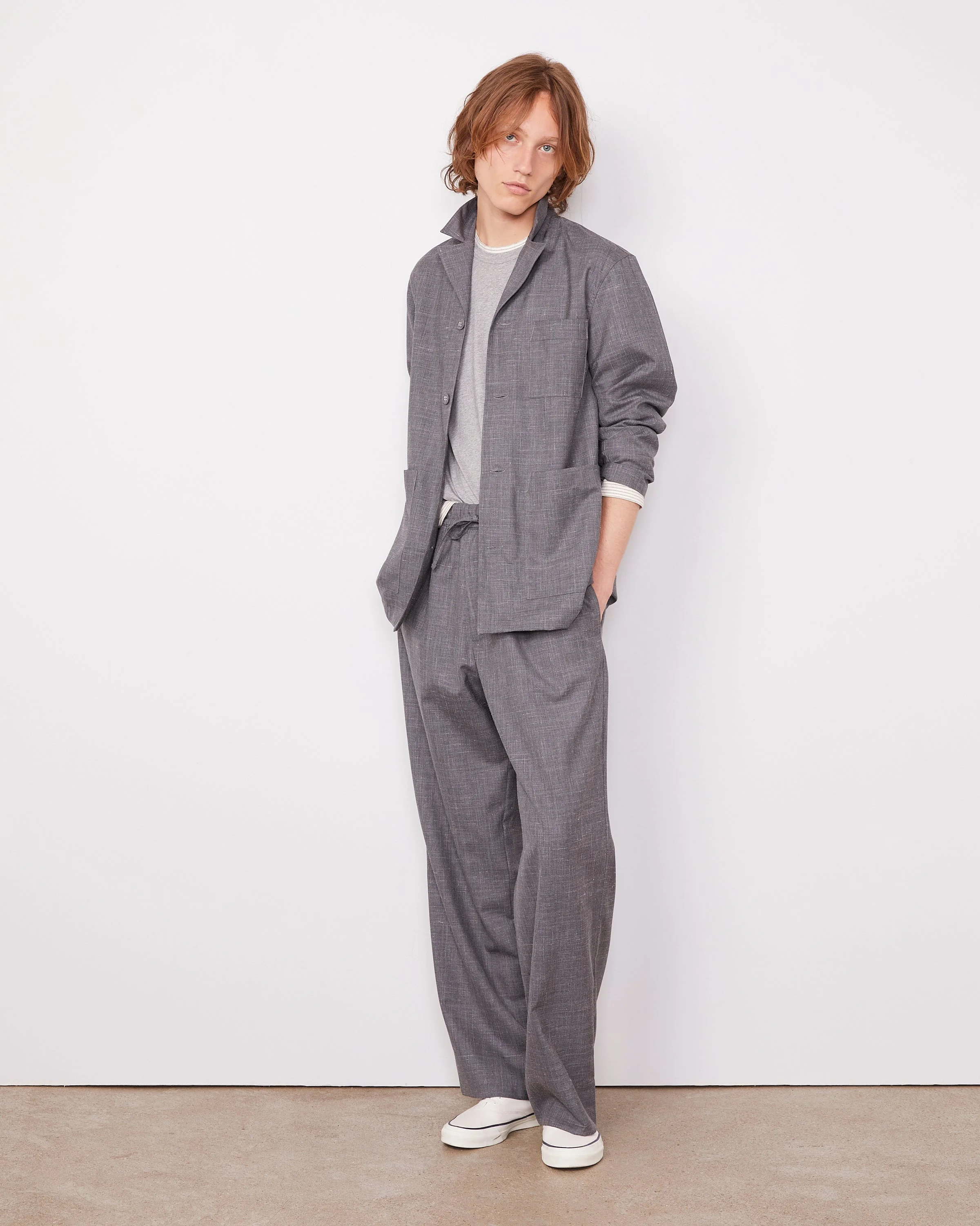 Unconstructed tailoring jacket with a loose round shoulder. Slightly loose fit. - 70% virgin wool 20% silk 10% linen - Flat collar - Front buttoned placket - Patch pockets - Sleeves lined - Matching pants available - Dry cleaning only - Made in Portugal This product sizes normally, we advise you to take your usual size. Our model measures 1m86 and wears a size S. Exists in sizes XS to XL. REF: S26MTLG400PRE