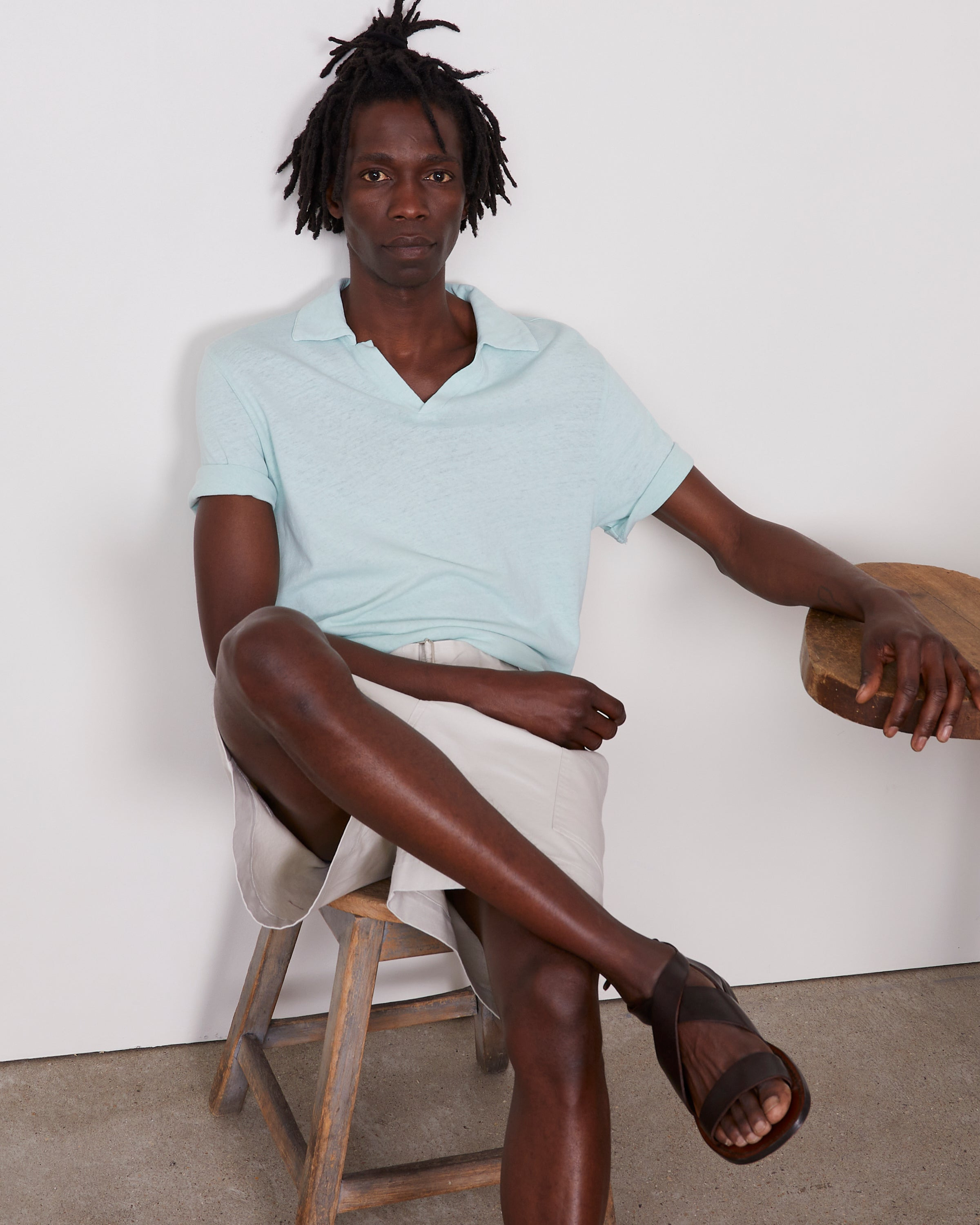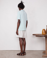 Short-sleeves polo with Johnny collar. Garment dye and garment wash. - 50% Cotton 50% Linen - Short sleeves - Polo with Johnny collar - Garment dye - Garment wash - Machine washable with similar colors, 30°. - Made in Portugal This product sizes normally, we advise you to take your usual size. Our model measures 1m86 and wears a size 48. Exists in sizes 44 to 54. REF: S25MTEE211