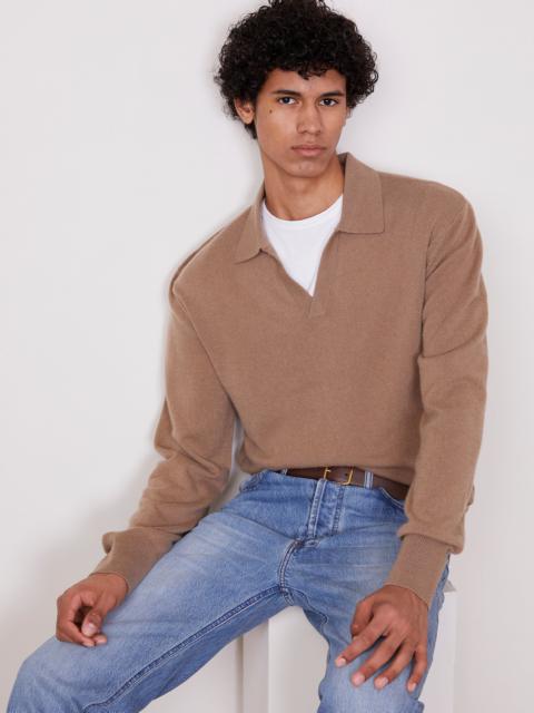 Long sleeves knitwear with a polo collar. Jersey stitch and RIB 1X1 at cuffs. Straight bottom with side slits. Mongolian cashmere yarns. Gage 12. - 100% Cashmere - Polo collar - Gage 12 - RIB 1X1 at cuffs - Jersey stitch - Side slits - Straight bottom - Classic fit - Handwash only. - Made in China This product sizes normally, we advise you to take your usual size. Our model measures 1m86 and wears a size S. Exists in sizes XS to XL. REF: S25MKNT301PRE
