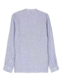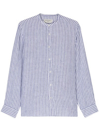striped linen blend shirt Highlights - Blue/white - Linen blend - Vertical stripe pattern - Band collar - Front button fastening - Long sleeves with buttoned cuffs - Short side slits - Straight hem Imported Composition Linen/Flax 77%, Hemp 23%