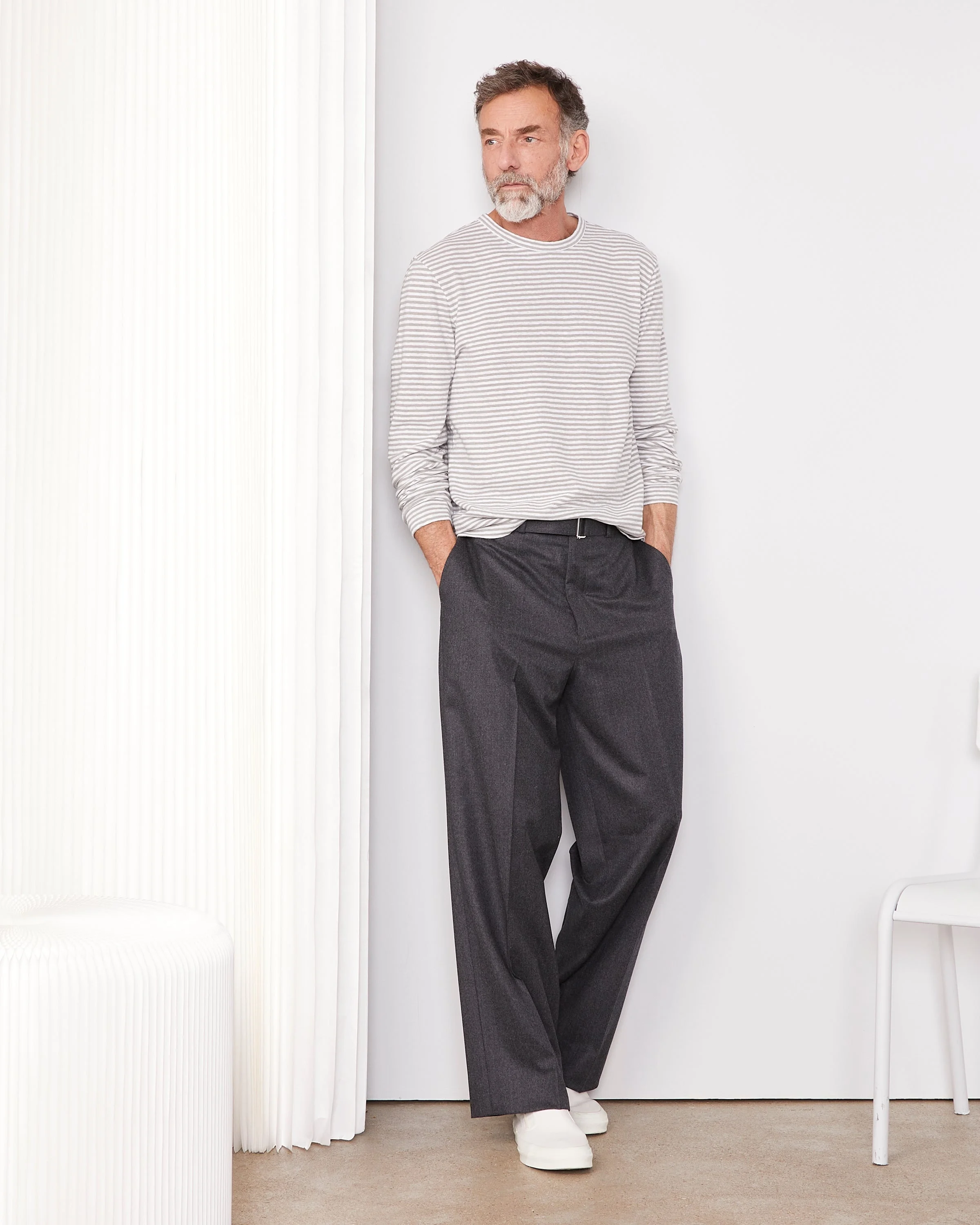 Long-sleeved round-neck t-shirt. Classic cut and straight hem. - 50% cotton 50% linen - Rounded collar in self fabric - Patch pocket on the left chest - Short sleeves - Straight bottom - Made in Portugal - Lavable en machine avec couleurs similaire, 30° - Machine washable with similar colors, 30° This product sizes normally, we advise you to take your usual size. Our model measures 1m86 and wears a size S. Exists in sizes XS to XXL. REF: W25MTEE205