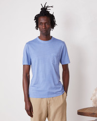 Short-sleeves crewneck. Chest pocket tee-shirt. Garment dye and garment wash. - 67% Lyocell 33% Cotton - Short sleeves - Crewneck - Chest pocket - Garment dye - Garment wash - Machine washable with similar colors, 30°. - Made in Portugal This product sizes normally, we advise you to take your usual size. Our model measures 1m86 and wears a size 48. Exists in sizes 44 to 54. REF: S25MTEE214