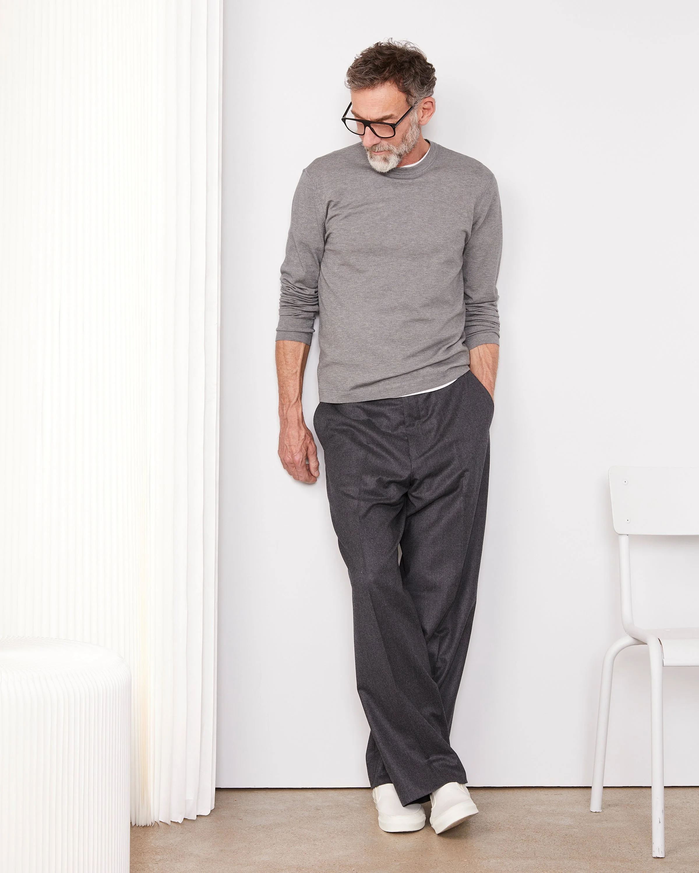 Long-sleeved round-neck t-shirt. Classic cut and straight hem. Flatlock finish on armhole, cuffs, collar and hem. - 32% wool 28% polyester 20% viscose 20% nylon - Rounded collar in self fabric - Flatlock finish on armhole, cuffs, collar and hem - Long sleeves - Straight bottom - Made in China - Dry cleaning only This product sizes normally, we advise you to take your usual size. Our model measures 1m86 and wears a size S. Exists in sizes XS to XXL. REF: W25MTEE208