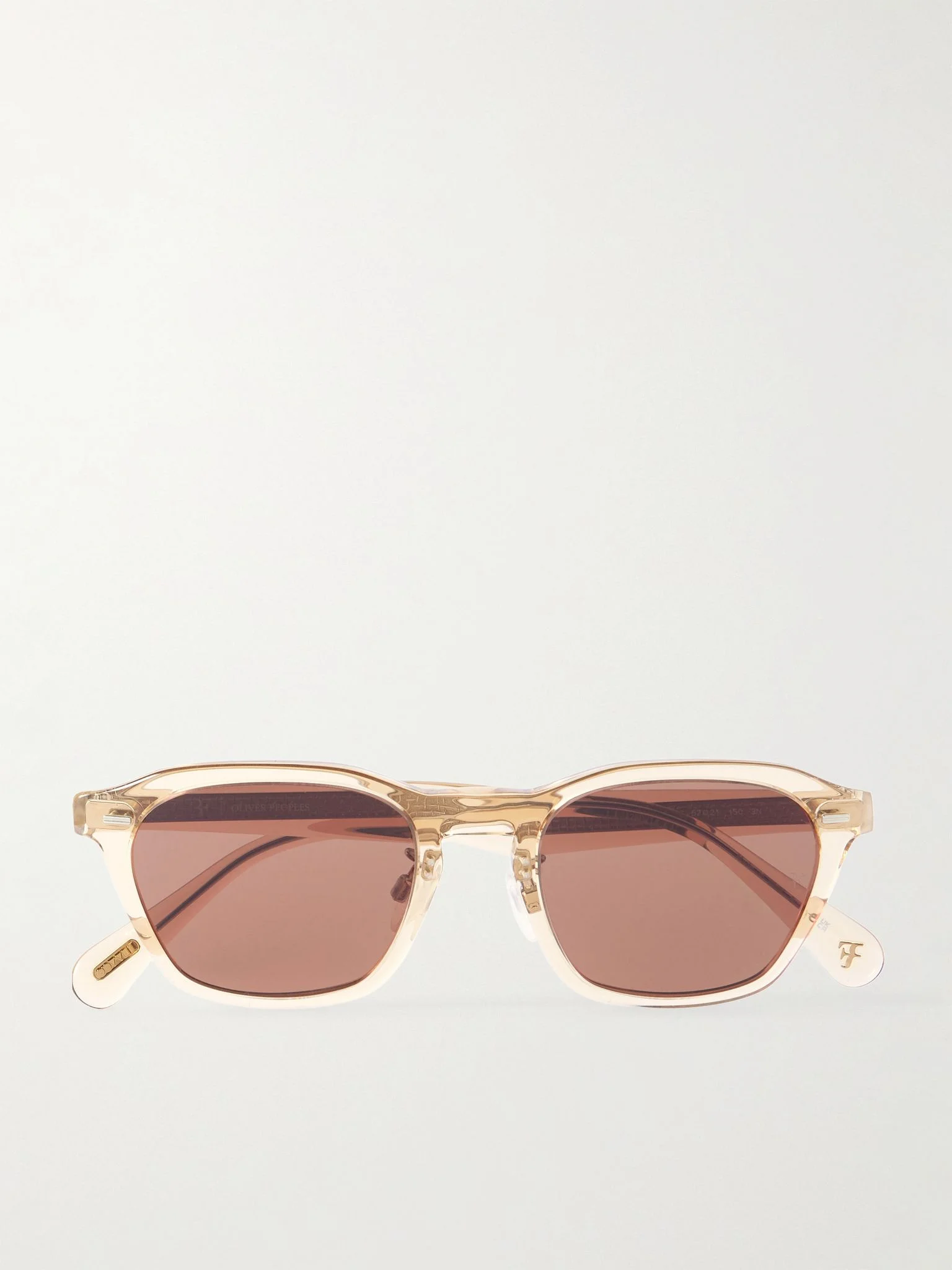 Oliver Peoples' 'R-11' sunglasses are part of its ongoing collaboration with tennis legend Roger Federer. Featuring adjustable 'air pocket' silicone nose pads, they've been made in Italy from sand transparent acetate and have vintage-style, D-shaped frames with signature branding throughout. Details & Care - Sand transparent acetate - Designer colour: Sand/ Clay - Come with a case - 100% UV protection