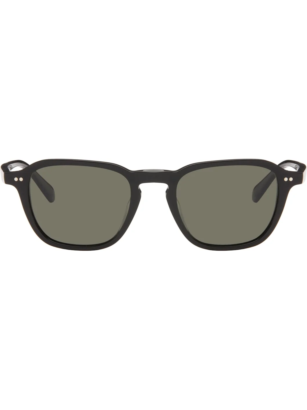 Handcrafted square acetate-frame sunglasses. · Khaki lenses · Keyhole bridge · Integrated nose pads · Logo plaque at temple tip · Includes case · Size: 50.20 145 Supplier color: Black acetate/G-15 polar crystal Acetate. Made in Japan 261499M134023